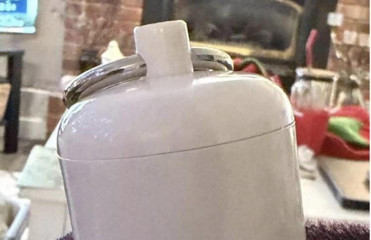 Це спеціальна кришка для зберігання коричневого цукру. Глиняну частину замочують у воді на 15 хвилин, після чого закривають контейнер — вона працює як природний зволожувач і не дає цукру тверднути.
