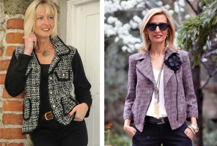 Тві́довий жакет з джинсами або з простою блузою — чудове рішення, яке не «старитиме». Оксамит краще вибирати у вигляді простого сукніного крою, без зайвих драпіровок і воланів, і додавати сучасні аксесуари: мінімалістичну сумку, акуратні туфлі або стильну брошку.