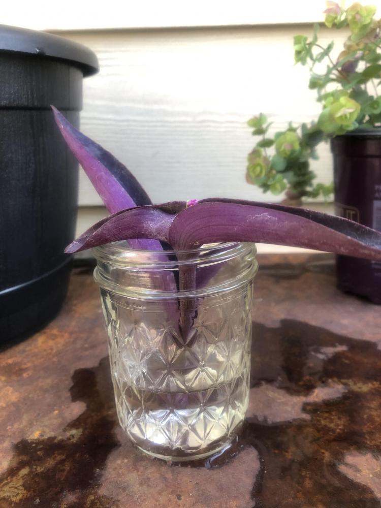 Традесканція легко вкорінюється навіть у воді. Кожен зрізаний пагін можна поставити у склянку — за тиждень-два з’являться корінці. Потім висадіть живці назад у той самий горщик — так кущ стане густішим від основи. Це простий спосіб омолодити стару рослину й створити об’ємну «шапку» замість кількох тонких пагонів.
