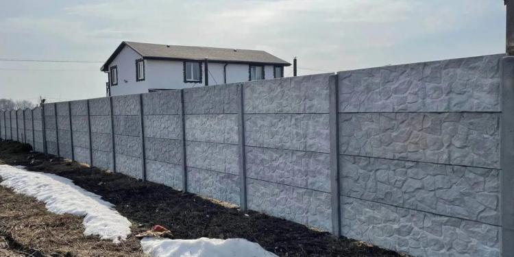 Але є й інший варіант. Сучасні бетонні паркани бувають декоративними: з імітацією каменю, цегли, дерева, з фарбуванням і текстурою. І чесно скажу — іноді вони виглядають навіть дорожче, ніж метал чи дерево.