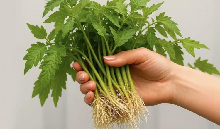 * якщо висаджуєте одразу в ґрунт без водного укорінення, заглиблюйте стебло майже до верхніх листків — томати легко формують додаткові корені.
