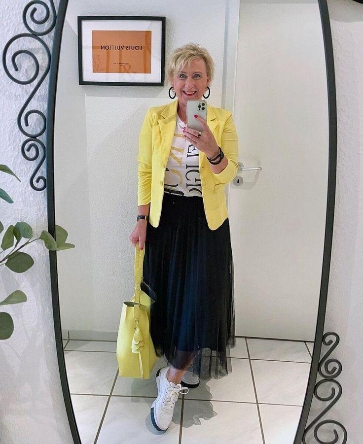Не обов’язково повністю відмовлятися від підборів: стійкий каблук середньої висоти робить ходу граційною і візуально стрункішою. Але й сучасне взуття без підборів – кеди, лофери, балетки чи слипони – чудово вписується у стильні омолоджувальні образи.