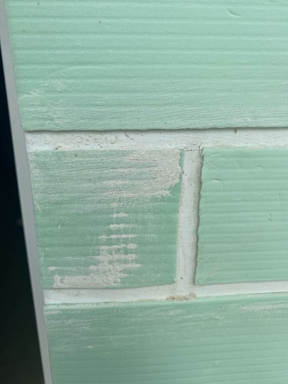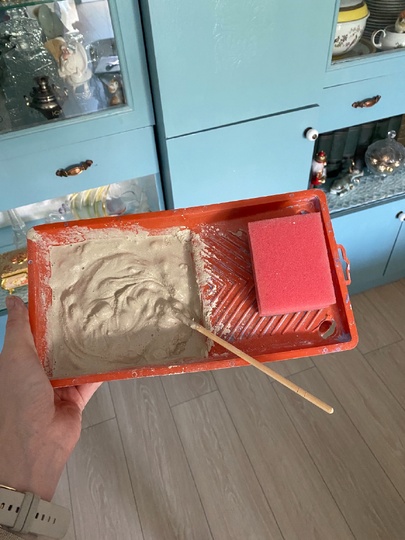Щоб конструкція була міцнішою, я покрила стіну двома шарами ПВА. Це ще й дозволило зекономити фарбу. Потім настав найприємніший момент — фарбування. Спочатку я використала залишки старої фарби, розвела її й наносила пензлем, щоб прокрасити всі шви. Результат вийшов непоганий, але хотілося більш рівного кольору. Тому я взяла свіжу банку фарби і пройшлася валиком — стіна заграла зовсім по-новому: однорідна, ніжна, і водночас з виразною текстурою «цегли».