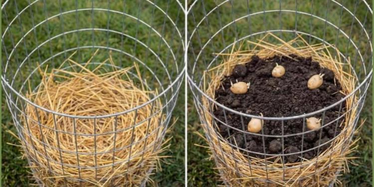 Саме тоді я спробувала простий спосіб — вирощування картоплі у високому циліндрі з сітки та соломи. Результат приємно здивував.