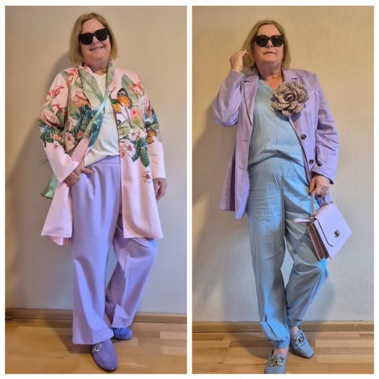 У її гардеробі є небесно-блакитні, рожеві, жовті та навіть бузкові речі — відтінок, який не так просто вписати в образ.
