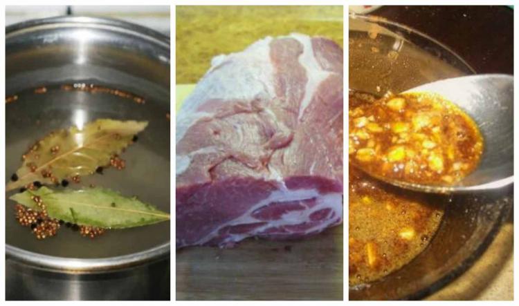 1–1,2 кг свинячого ошийка або лопатки; м’ясо, замариноване у розсолі;