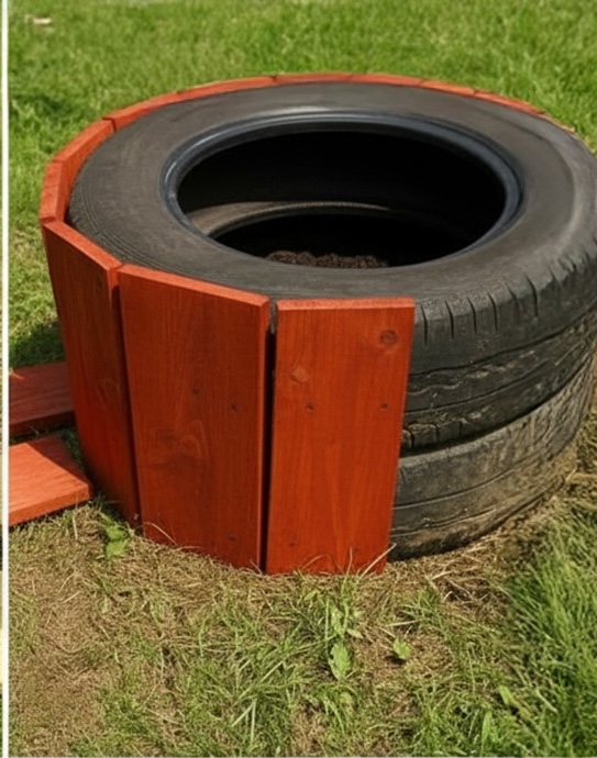 У підсумку з двох старих шин, кількох дощок та годинки роботи я отримав оригінальну й міцну клумбу, яка відмінно виглядає у дворі. А головне — усе зроблено власноруч і з мінімальними затратами. Якщо маєш старі шини — раджу спробувати. Результат точно потішить!