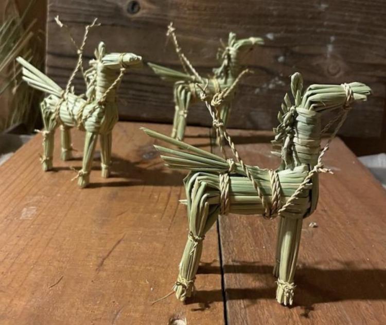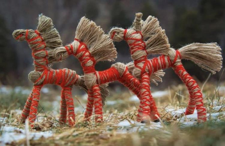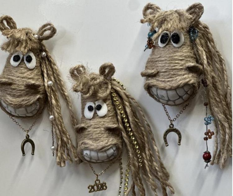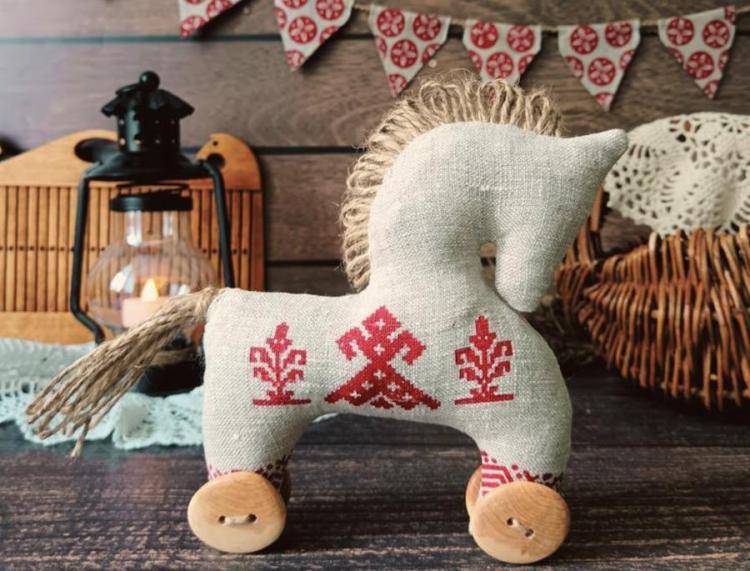 Щоб коник виглядав святково, я додала невеличку декоративну стрічку навколо «талії». За бажанням можна приклеїти маленькі оченята або вишити їх ниткою. Готово!