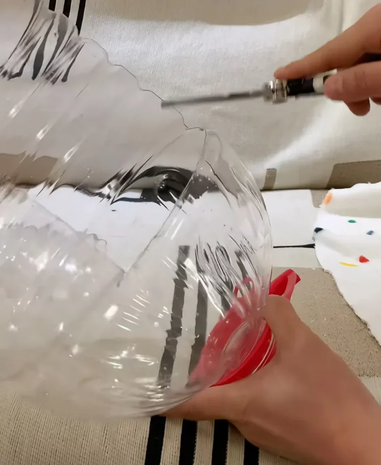 Кришку від бутля можна залишити — вона виглядає кумедно й додає лежанці характеру. Зовні бутель за бажанням можна обгорнути тканиною або мотузкою, але на практиці більшість котів цінують не дизайн, а відчуття захищеного простору.