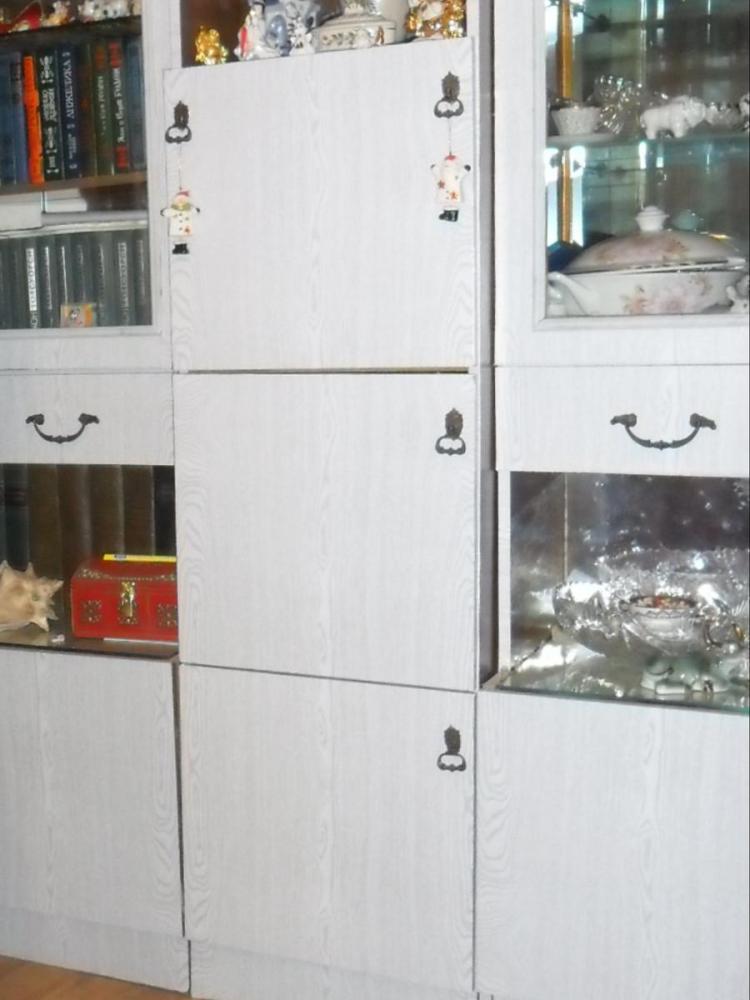 Довго шукала нову фурнітуру – хотілося керамічну, і таки знайшла! У результаті три літри фарби, кілька баночок колеру та літр лаку подарували нашій стінці п’яте життя.