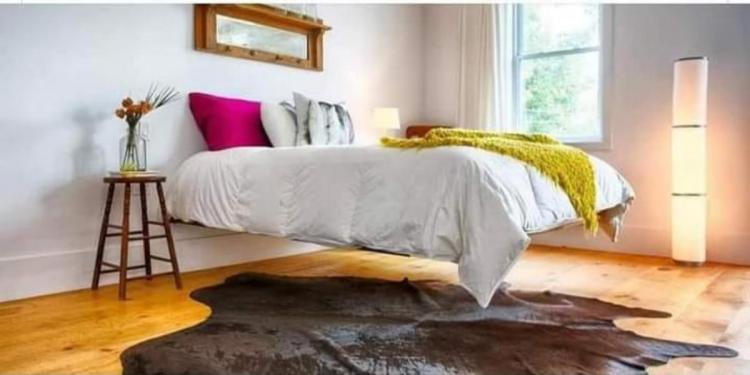 Коли я вперше побачила таке “літаюче” ліжко, мене одночасно вразила ідея й насторожила конструкція. На фото добре видно, що ефект левітації створюється завдяки масивним металевим балкам, прихованим у стіні. Це не декор, а повноцінна несуча основа, яка бере на себе всю вагу.