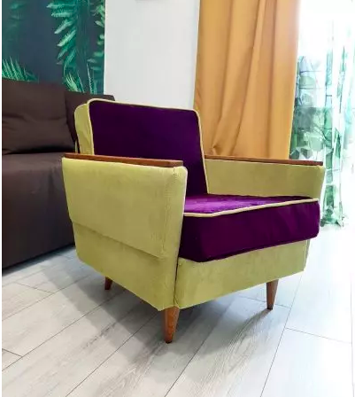 У результаті мені вдалося відреставрувати старе крісло і перетворити його на яскраву прикрасу кімнати.