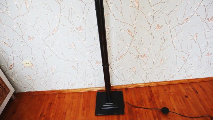 Ніжку торшера пофарбувала чорною фарбою з балончика — спершу один шар, а коли висох, нанесла другий, щоб виглядало акуратно.