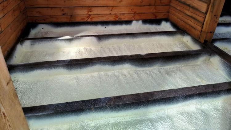 Далі усі щілини ретельно запінюються, після висихання надлишки піни зрізаються, і в порожнини щільно укладається мінеральна вата.