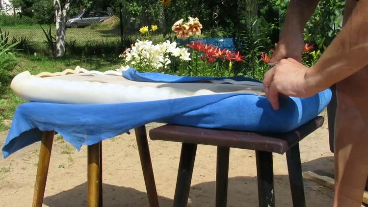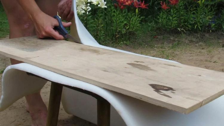 Чоловік зафіксував поролон за допомогою будівельного степлера. Зверху поклали найбільший шматок.