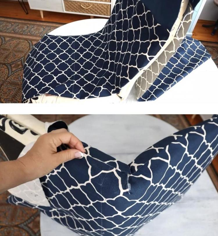 Під сидінням зробила запах, як у подушкових наволочках, а потім акуратно зашила вручну. Найважливіше було, щоб тканина щільно облягала конструкцію.