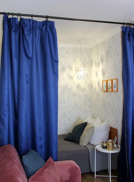 У спальні наклеїли ніжні шпалери, щоб створити затишну атмосферу.