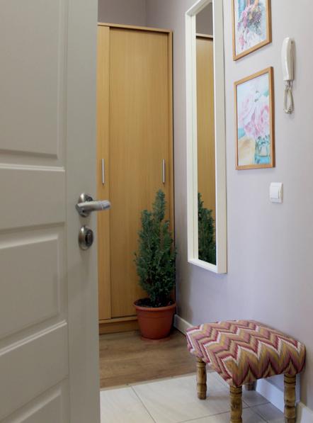 У передпокої після ремонту з обох боків від вхідних дверей встановили місткі шафи для зберігання речей — тепер кожна дрібниця має своє місце.