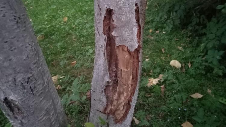 Починаю зі стовбура. Ретельно обробляю всі розгалуження, тріщини та гілки. Не забуваю про приствольні кола та опале листя.