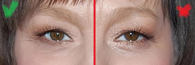 З віком шкіра повік стає менш пружною, тому блискучі тіні лише підкреслять зморшки. Водночас повністю матовий макіяж теж може зробити погляд важчим. Оптимальний варіант — матова основа з легким сатиновим акцентом. Трохи світлих перламутрових тіней у центрі верхньої повіки чи у внутрішньому кутику ока освіжать погляд і додадуть м’якості.