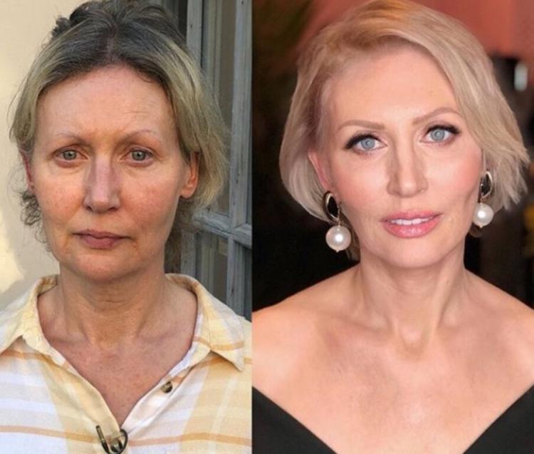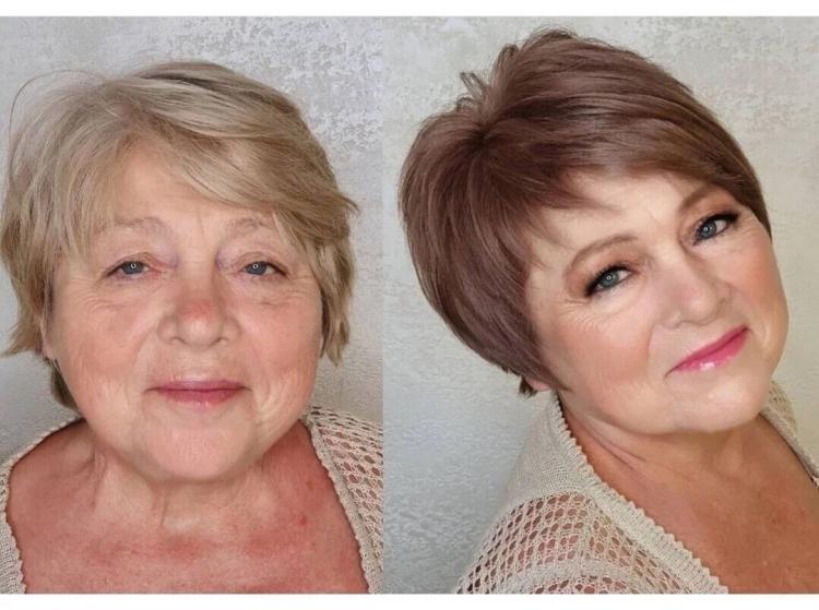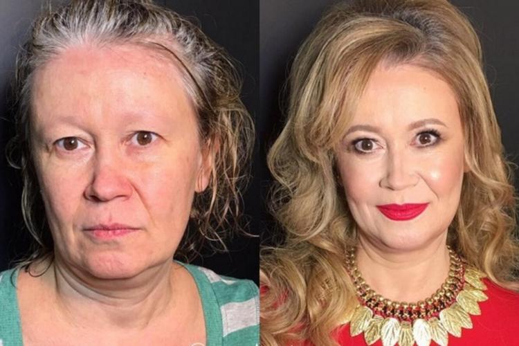 У цьому випадку знадобилася комплексна робота візажиста, перукаря та колориста. Жінці підібрали стрижку, що краще пасує до форми обличчя, і більш гармонійний колір волосся. У макіяжі акцент зробили на очі та рівний, свіжий тон шкіри.
