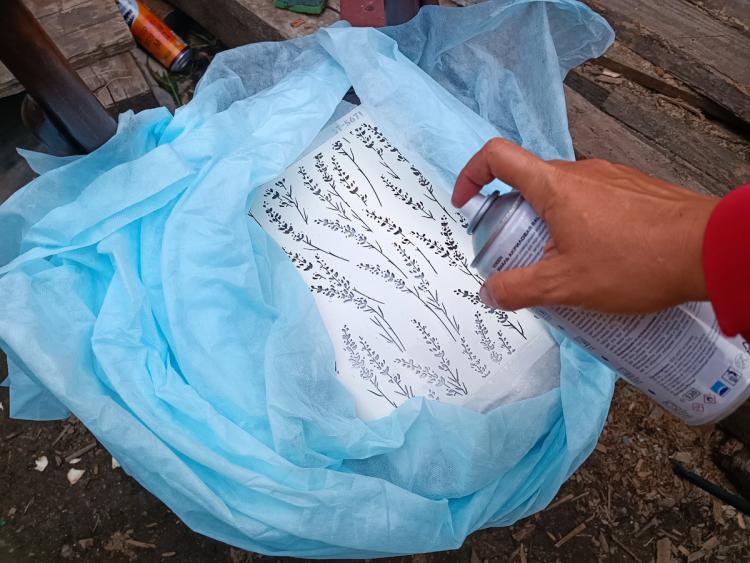 Нею й довелося покрити мій так і не реалізований «світлий» задум. Щоб стілець виглядав цікавіше, після висихання пропитки я додала через трафарет візерунок білою аерозольною фарбою. Трохи орнаменту з’явилося і на спинці.