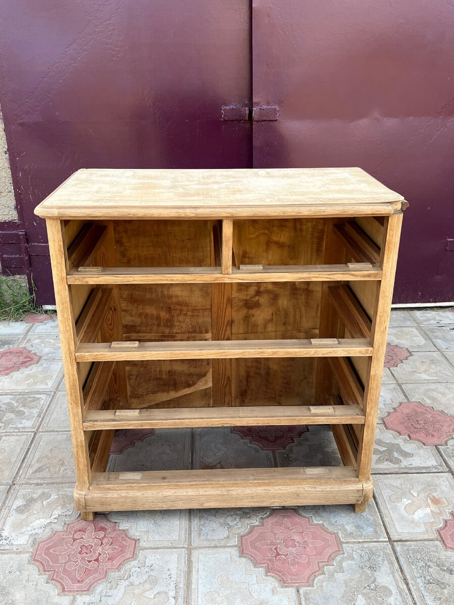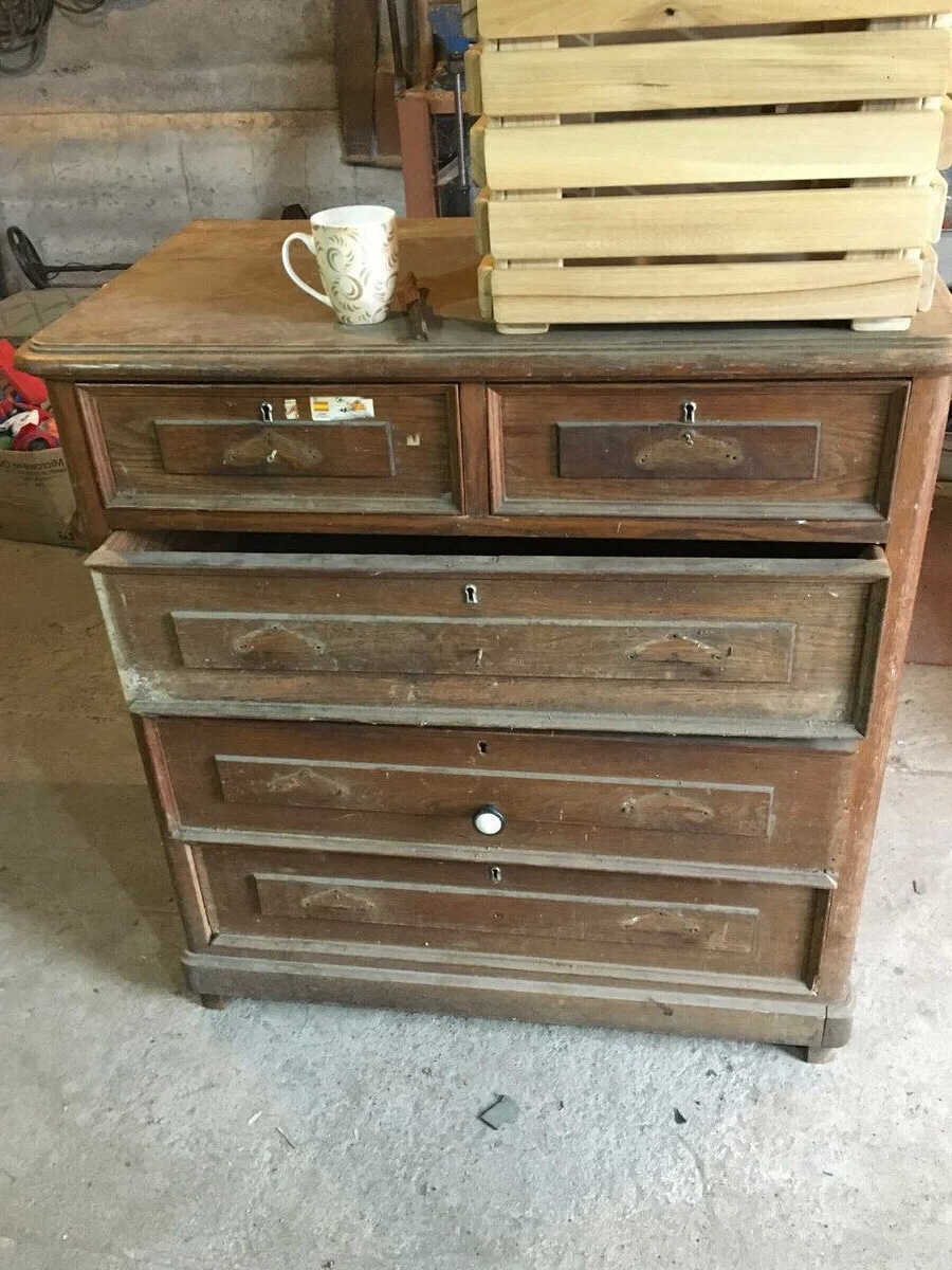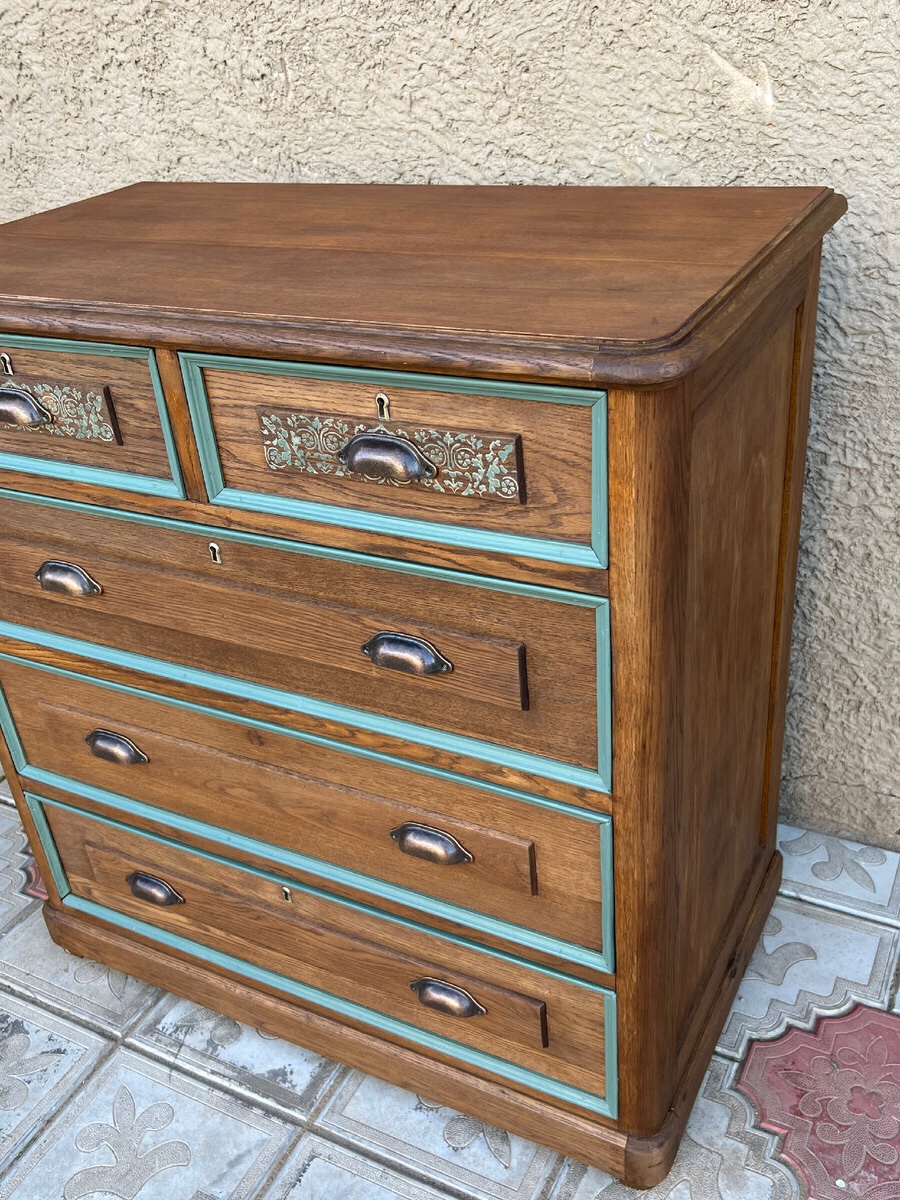 Вона провела масштабний процес реставрації, який включав очищення, зняття старого покриття, шліфування, склеювання деталей, відновлення штапиків і фарбування. Також на верхні шухляди додали декоративні елементи.