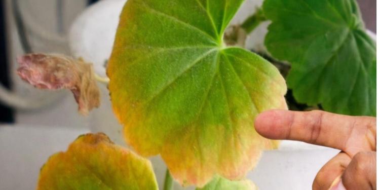 Найчастіша помилка — перелив. Коріння герані не любить застою води, через що воно починає задихатися і гнити. У відповідь листя жовтіє, підсихає по краях або повністю всихає. Але й тривала посуха шкодить: при нестачі вологи рослина скидає листя, щоб зменшити випаровування.