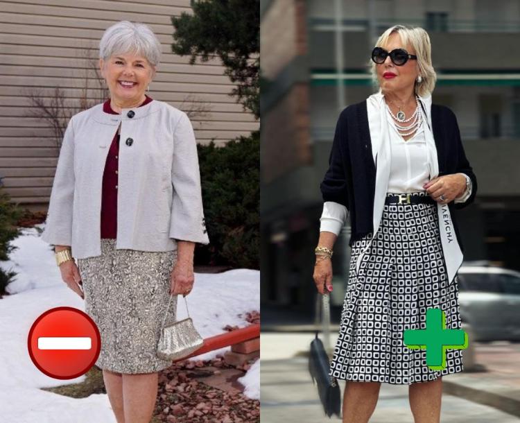 Бути привабливою можна в будь-якому віці, питання лише в подачі. Те, що органічно виглядає на молодих дівчатах, після 50 може здаватися вульгарним. Короткі спідниці, надто глибокі декольте, обтислий напівпрозорий одяг часто виглядають недоречно. Якщо про стиль кажуть: «наче рокова красуня, але щось не так», — це тривожний сигнал.